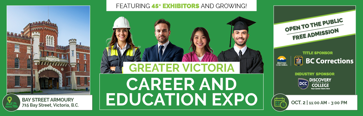 Join us at the Greater Victoria Career & Education Expo and visit all the amazing exhibitors who are joining us. See what employers are hiring for, learn about career programs, and enter or extend your education with post-secondary institutes.